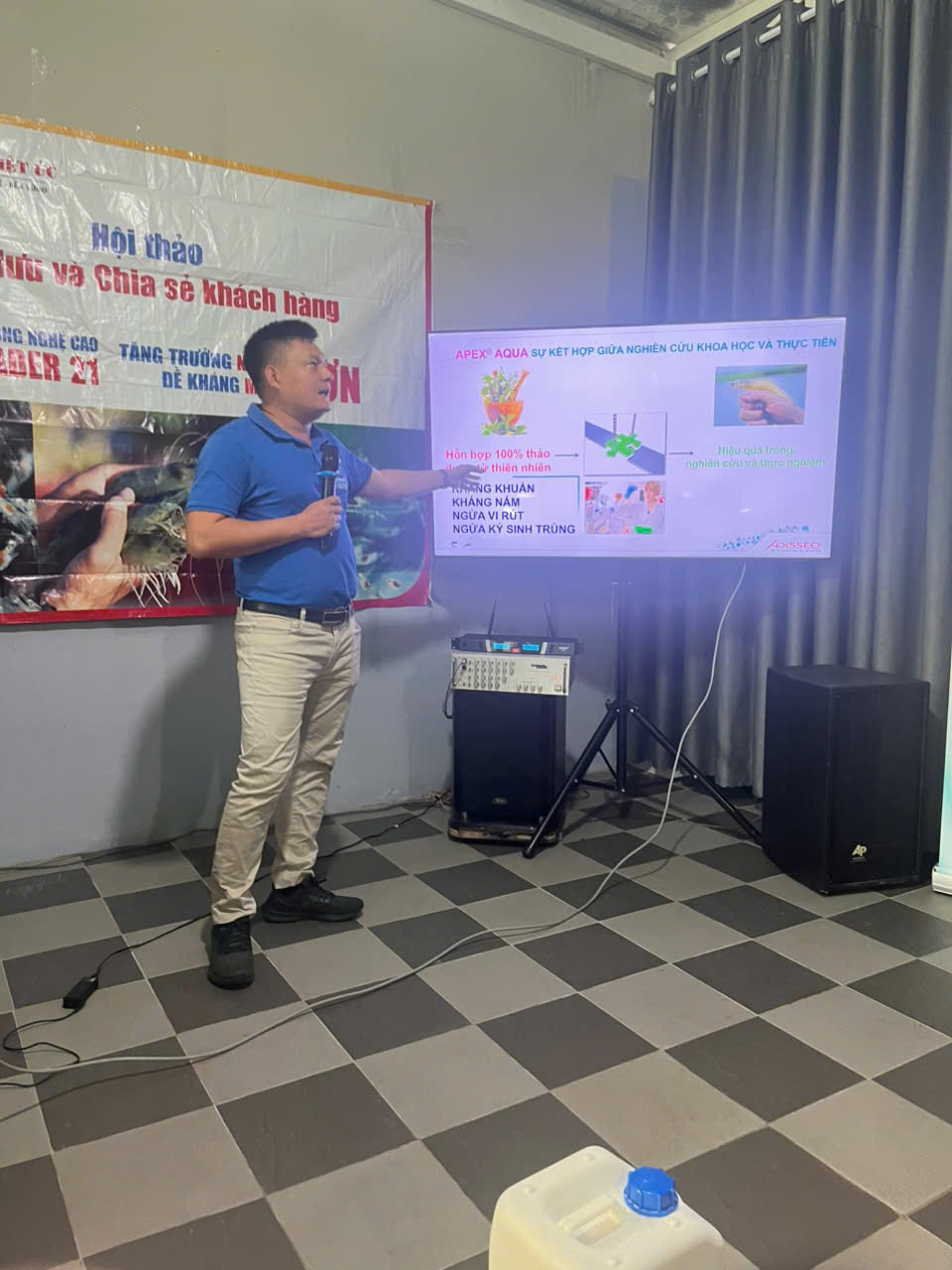 Ngày 08/7/2025, tại thị xã Lagi – Bình Thuận (cũ), Công ty Tân Sao Á phối hợp cùng Tập đoàn Việt Úc và đại lý Bình Vân đã tổ chức thành công Hội thảo Giao lưu và Chia sẻ khách hàng trong lĩnh vực nuôi tôm.