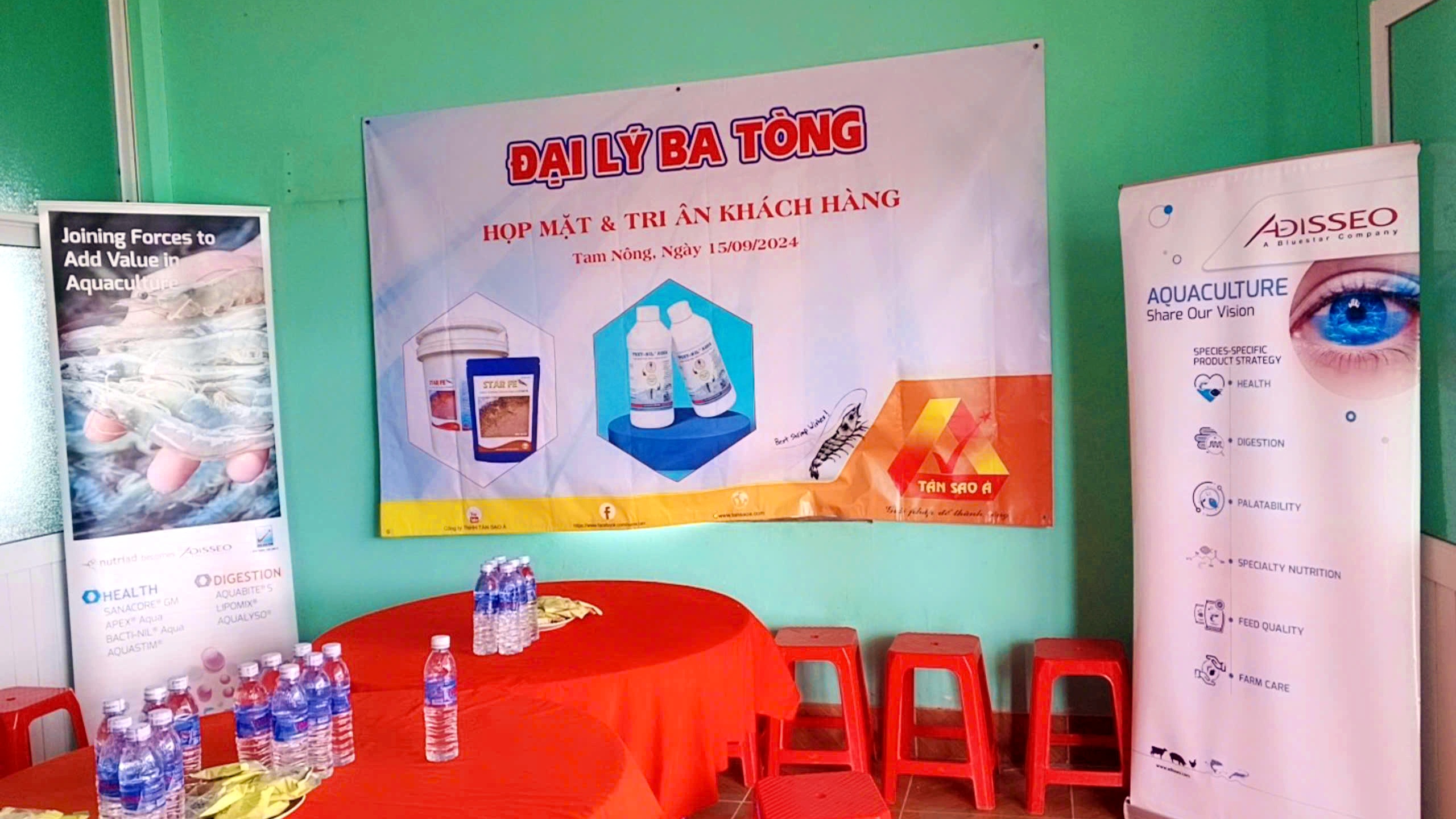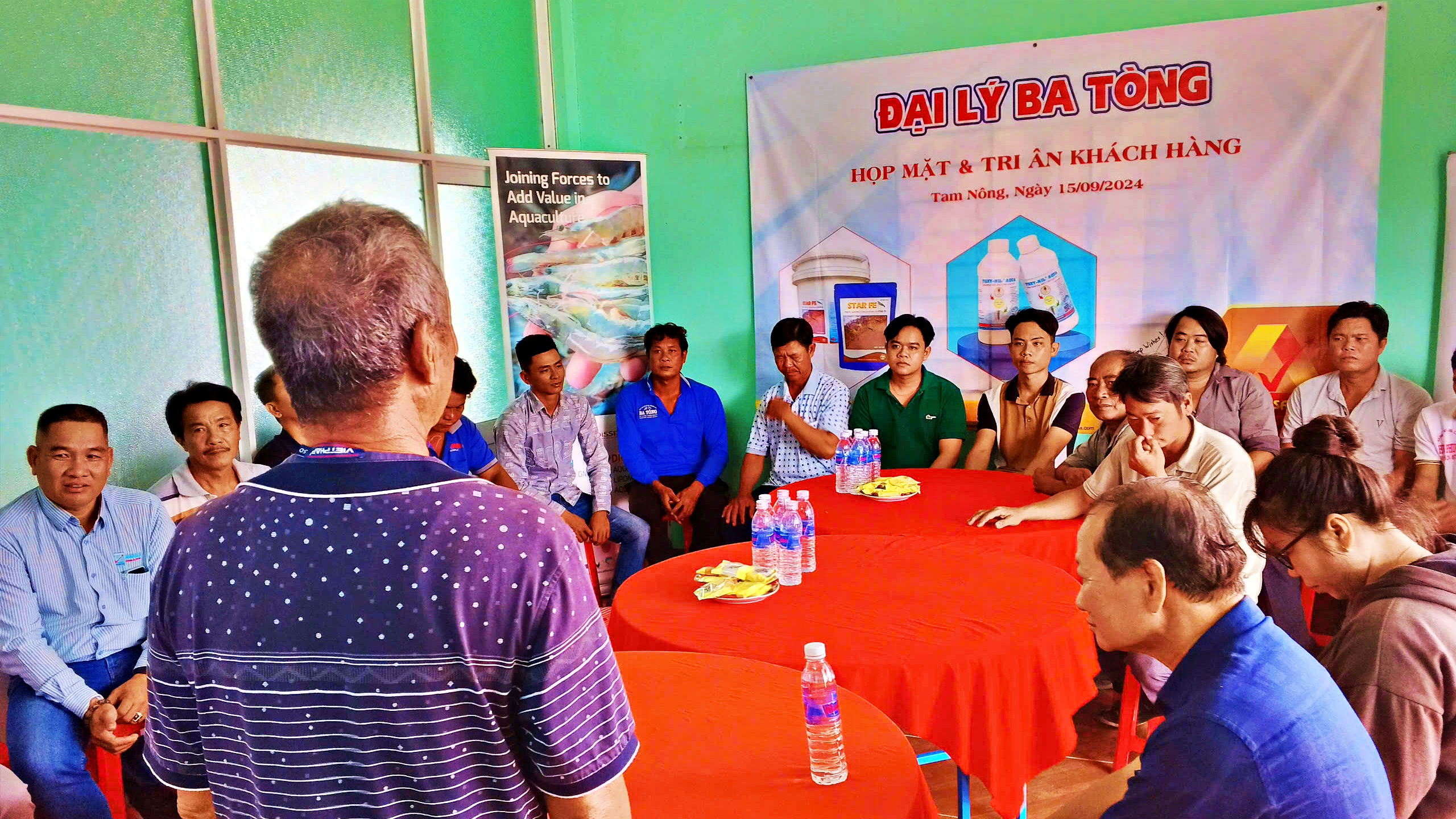 Nhằm nắm bắt rõ hơn nhu cầu nuôi tôm của bà con tại vùng Đồng Tháp, vào ngày 15/9/2024, Công ty Tân Sao Á đã phối hợp cùng đại lý Ba Tòng tổ chức buổi hội thảo về kỹ thuật nuôi tôm. Mục tiêu của buổi hội thảo là hỗ trợ bà con hiểu biết sâu sắc hơn về sản phẩm cũng như các phương pháp nuôi tôm hiệu quả. Đồng thời, giải đáp những vướng mắc và khó khăn mà bà con gặp phải trong quá trình nuôi tôm.