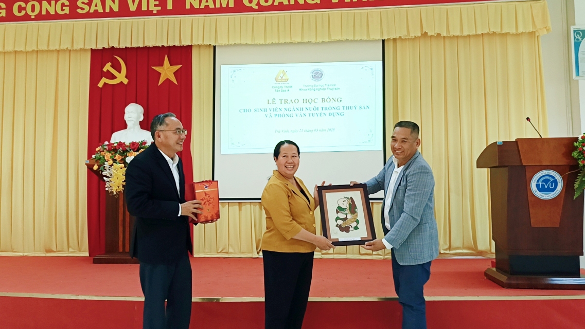 Lễ trao học bổng và phỏng vấn tuyển dụng ngày 21 tháng 3 năm 2025 là một sự kiện quan trọng, đánh dấu sự kết nối giữa Trường Đại Học Trà Vinh và các doanh nghiệp trong ngành Nuôi Trồng Thủy Sản. Buổi lễ không chỉ tạo cơ hội cho sinh viên nhận được sự hỗ trợ tài chính mà còn là cầu nối giữa lý thuyết và thực tiễn, giúp các em tìm kiếm những cơ hội nghề nghiệp phù hợp với chuyên ngành học.